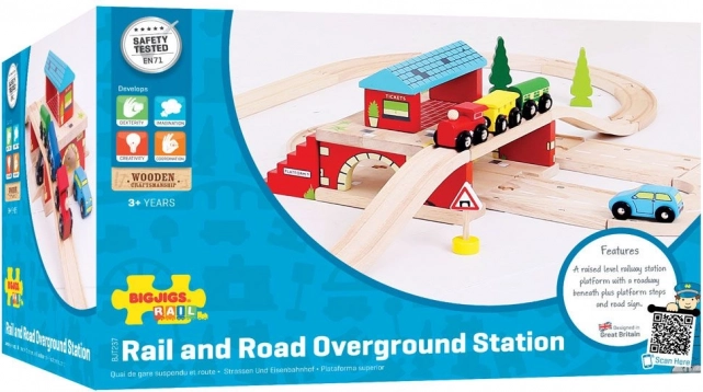 Betreed de fantasiewereld met het houten speelgoed Station Boven Weg van Bigjigs Rail, dat transportplezier en geweldige interactie van kinderen met spoor en weg mogelijk maakt.
