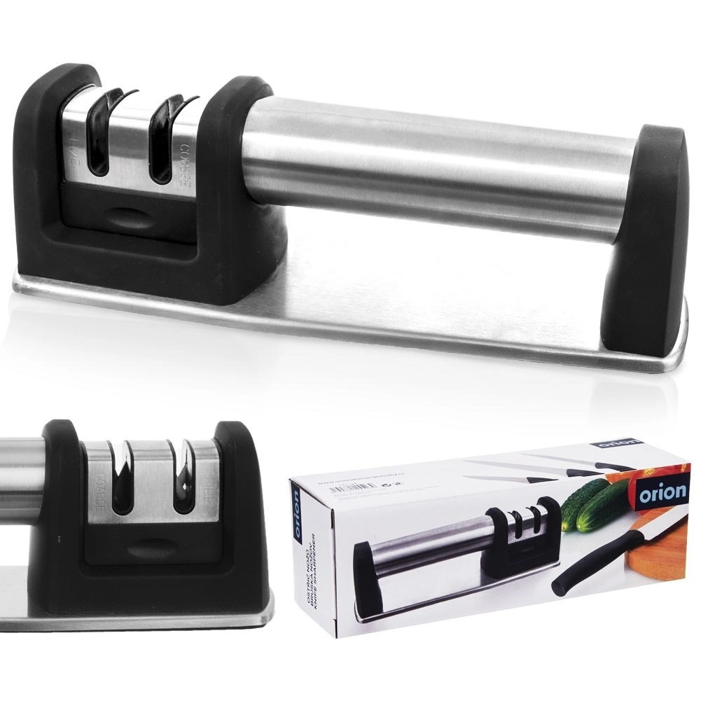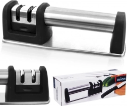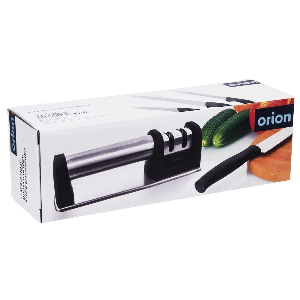 Houd uw keukenmessen in topconditie met de tweestaps slijper ORION. De robuuste combinatie van roestvrij staal en duurzaam kunststof staat voor een lange levensduur, terwijl de antislipbasis en ergonomische greep zorgen voor een veilige en stabiele hantering tijdens het slijpen. Twee aparte sleuven maken eerst het snel herstellen van de snede en vervolgens het precies polijsten mogelijk.