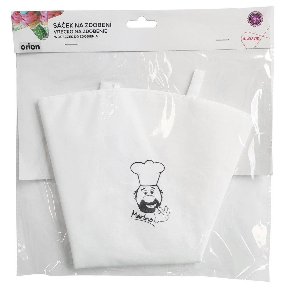 Praktische banketbakkersspuitzak van 30 × 17 cm voor het decoreren van taarten, gebak, peperkoek en ook hartige hapjes. Gemaakt van hoogwaardige katoen met een interne rubberlaag voor duurzaamheid, elasticiteit en nauwkeurige dosering. Geschikt voor diverse stalen spuitmondjes, meerdere keren te gebruiken en geschikt voor de vaatwasser. Origineel product van het merk ORION.