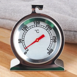 De grote en overzichtelijke wijzerplaat met schaal per 10 °C dekt een bereik van 0–300 °C, zodat u eenvoudig de ideale temperatuur voor bakken en roken bewaakt. De constructie is stabiel, de thermometer is licht en onderhoudsvriendelijk, neemt geen geuren op en is neutraal voor voedsel.