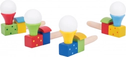 Deze kleurrijke houten locomotief met ballon verandert een simpele blaas in een klein wonder. Kinderen oefenen hun ademhaling en controle, kijken hoe het witte balletje boven de schoorsteen zweeft en ontwikkelen zo coördinatie en geduld. Ideaal voor korte speelpauzes of langere geconcentreerde pret.