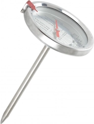Betrouwbare keukenthermometer met een roestvrijstalen sonde van 12 cm meet direct in het vlees en zorgt ervoor dat braadstukken, gevogelte en steaks precies worden bereid zoals u het wenst. De duidelijke analoge wijzerplaat biedt snelle aflezing van de temperatuur in het bereik 50–90 °C, ideaal voor de meeste vleessoorten en warme gerechten.