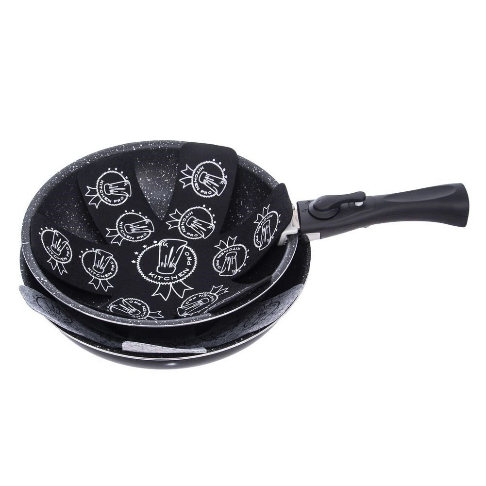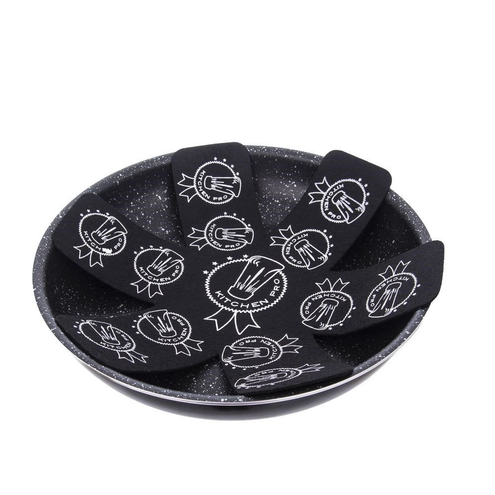 Houd uw kookgerei als nieuw met vilten scheiders met een diameter van 32 cm. Ze zijn geschikt tussen pannen, potten, schalen en ander keukengerei en voorkomen krassen op antiaanbakoppervlakken en andere mechanische schade. De stervorm met brede armen bedekt betrouwbare gevoelige zones.