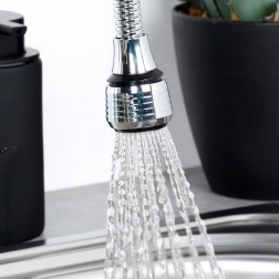 Upgrade je gootsteen of wastafel met een flexibele perlator die het water belucht en zo het verbruik verlaagt zonder comfortverlies. Met twee standen schakel je eenvoudig tussen een gerichte straal en een zachte douche – ideaal voor het afspoelen van vaat, handen wassen en voor gevoelige oppervlakken.