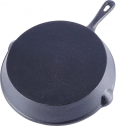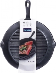 Robuuste gietijzeren grillpan met een diameter van 24 cm voor perfect geschroeide steaks, groenten en aardappelen. Dankzij de massieve constructie houdt hij warmte uitstekend vast, creëert duidelijke grillstrepen en is geschikt voor alle soorten kookplaten, inclusief inductie, én voor in de oven. Dubbele schenktuiten vergemakkelijken het afgieten van sappen, hoge hittebestendigheid zorgt voor een lange levensduur en het universele gebruik is ideaal zowel thuis als op de grill of bij het kampvuur.