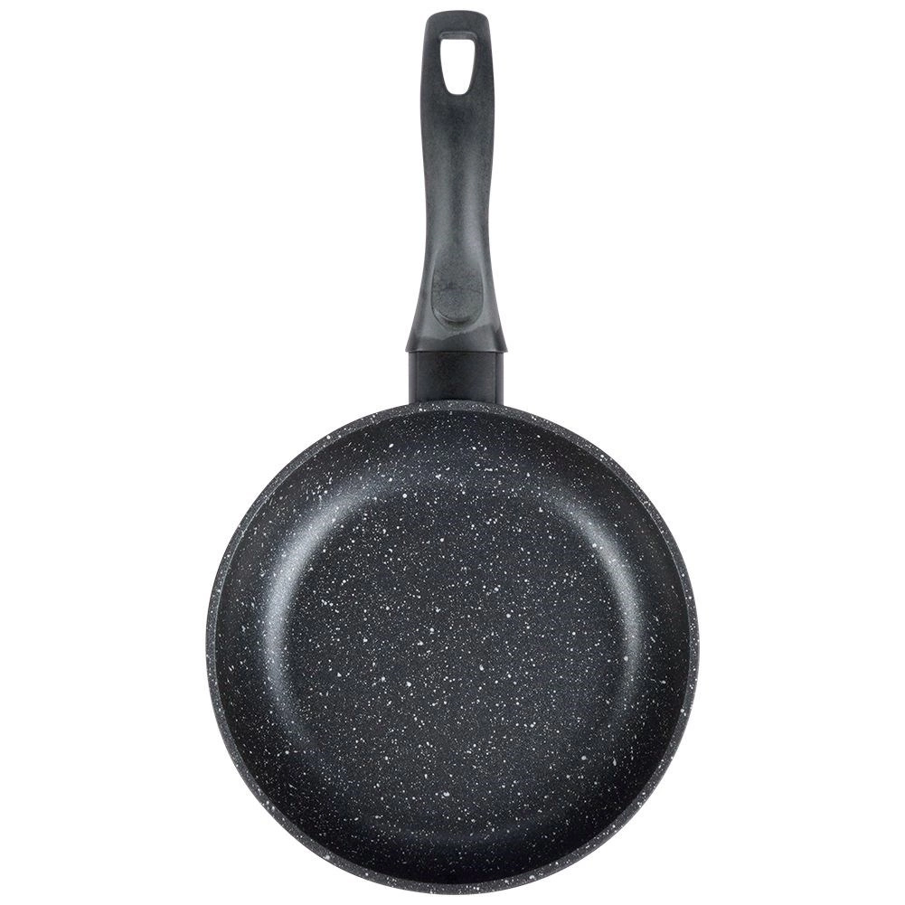 Compacte granieten pan met een diameter van 20 cm voor dagelijks koken. Biedt een antiaanbaklaag zonder PFOA en PTFE, gelijke warmteverdeling en snel, energiezuinig bakken. De ergonomische handgreep wordt niet heet en de pan is geschikt voor gas, elektrisch, keramisch, halogeen en inductie en vaatwasserbestendig.