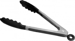 Praktische keukentang, perfect voor omdraaien, serveren en opscheppen. Het robuuste roestvrijstalen lichaam zorgt voor een stabiele grip, terwijl de geribbelde siliconen uiteinden voedsel veilig vasthouden en teflon-, keramische en andere antiaanbakoppervlakken niet bekrassen. Het geïntegreerde oog fungeert als ophanglus én vergrendeling voor ruimtebesparende opslag.