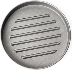 De geribbelde bodem zorgt voor een uniforme vorm en dikte, zodat de burgers gelijkmatig garen en er professioneel uitzien.
