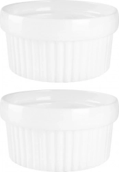 Praktische set van twee witte keramische ramekins met een inhoud van 170 ml en een diameter van 9,5 cm voor dagelijks bakken en serveren. Dankzij de hoogwaardige keramiek zijn ze hittebestendig, geschikt voor de oven, magnetron en vaatwasser. Ideaal voor crème brûlée, soufflé, mini-ovengerechten en sauzen en dips.