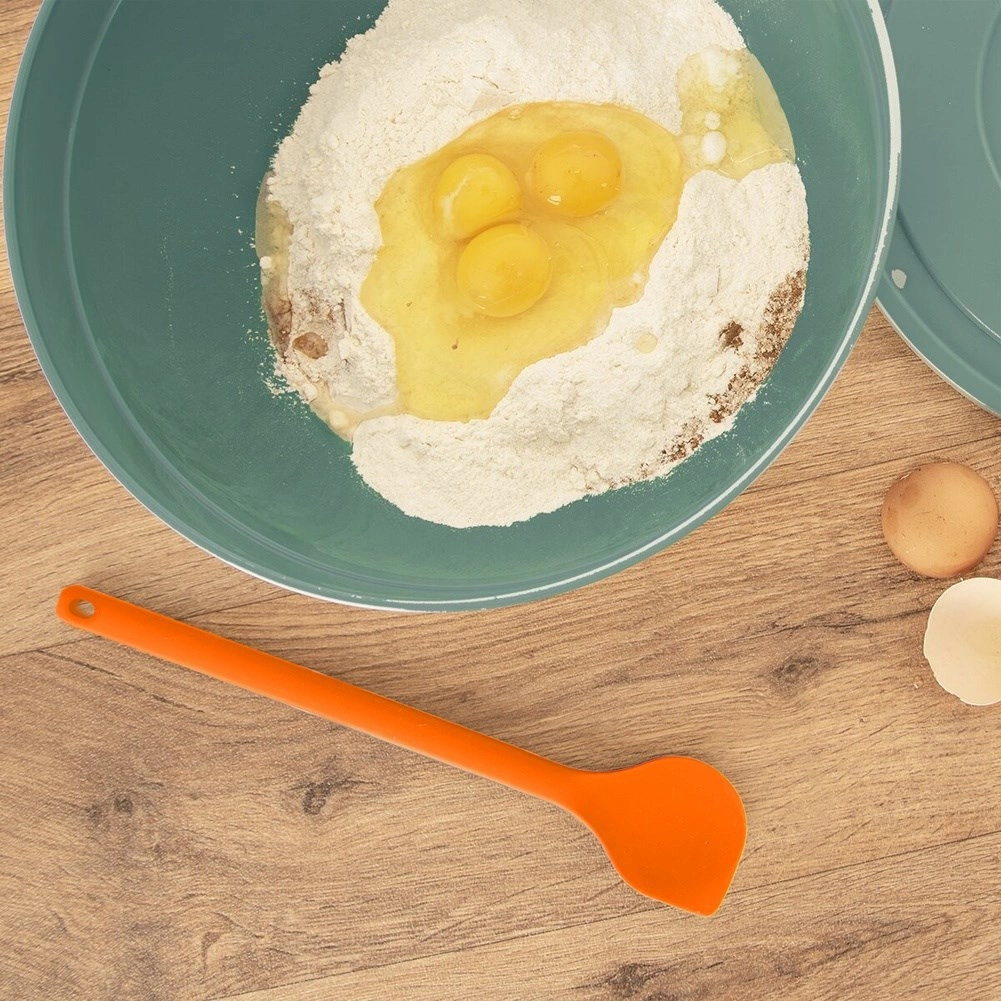 Deze oranje siliconen spatel is een betrouwbare hulp voor dagelijks koken en bakken. Dankzij de temperatuurbestendigheid van -40 °C tot 220 °C is hij geschikt voor roeren in de pan en werken met hete gerechten, terwijl hij geen krassen veroorzaakt op teflon-, keramische of andere antiaanbakoppervlakken.