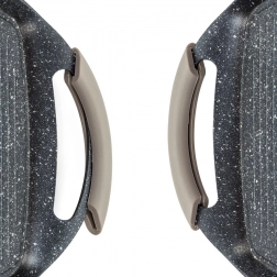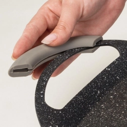 Afneembare siliconen hoezen voor een zekere grip. Geschikt voor gas, elektrisch, keramisch, halogeen, inductie, grill en oven (zonder hoezen).
