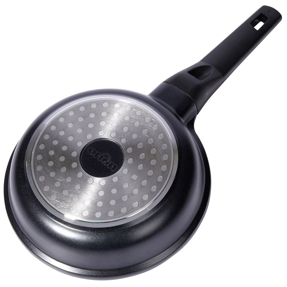 De meerlaagse bodem verdeelt de warmte uitstekend over het hele oppervlak van de pan. Geschikt voor gas, elektrisch, keramisch en inductie.