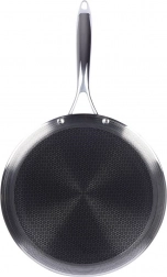 Het getextureerde oppervlak met hex/honingraatstructuur zorgt voor uitstekende antiaanbak-eigenschappen, krasbestendigheid en de mogelijkheid metalen tools te gebruiken.