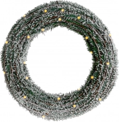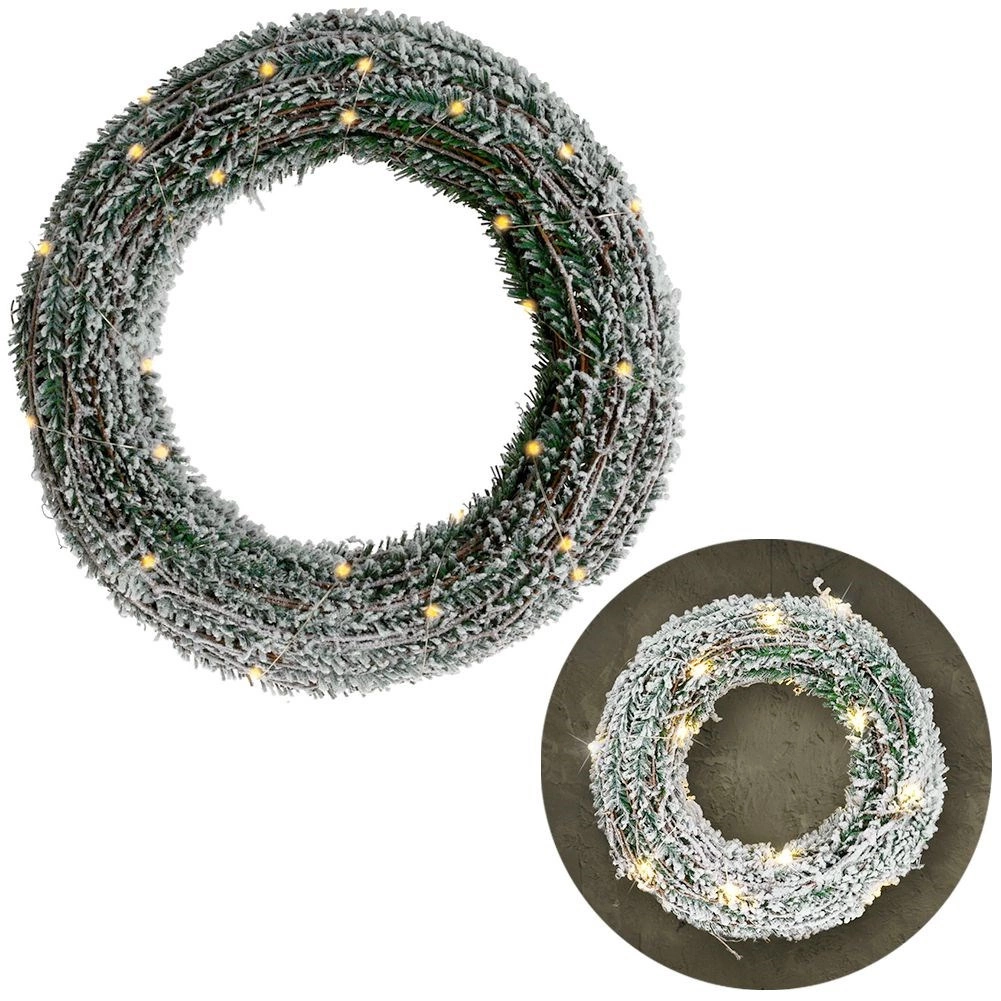 Creëer een magische feestelijke sfeer met deze decoratieve krans, die besneeuwd naaldgroen natuurgetrouw imiteert en zacht straalt dankzij 30 warme LED’s. Dankzij de batterijvoeding kun je hem overal plaatsen – aan de deur, boven de haard, in het raam of op een plank – zonder zichtbare kabels en zonder ingewikkelde installatie.