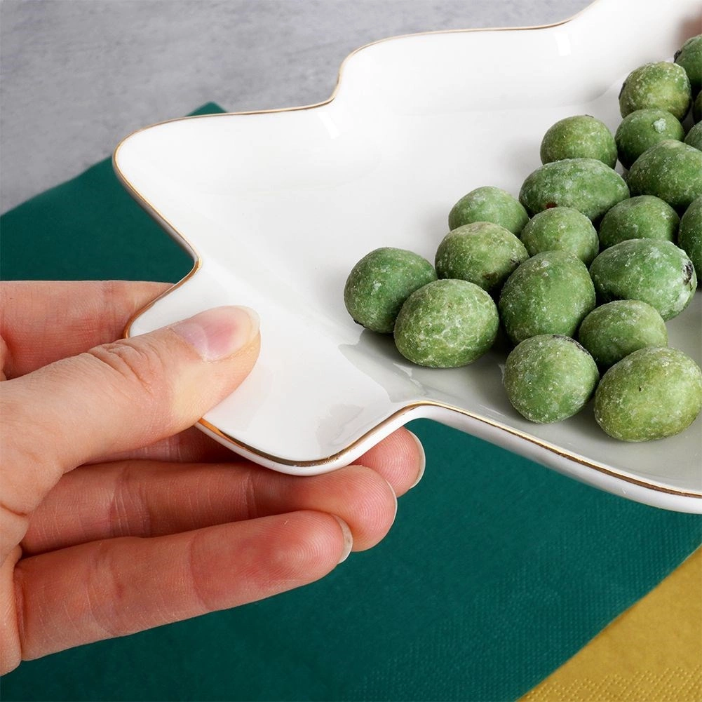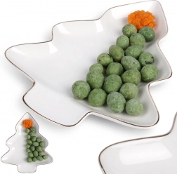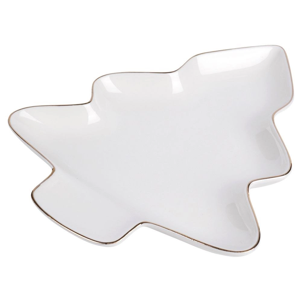 Creëer een sfeervolle feesttafel met dit porseleinen bord in de vorm van een kerstboom. Tijdloos wit met een gouden rand laat lekkernijen extra opvallen en geeft je tafel een elegante touch tijdens het winter- en kerstseizoen.