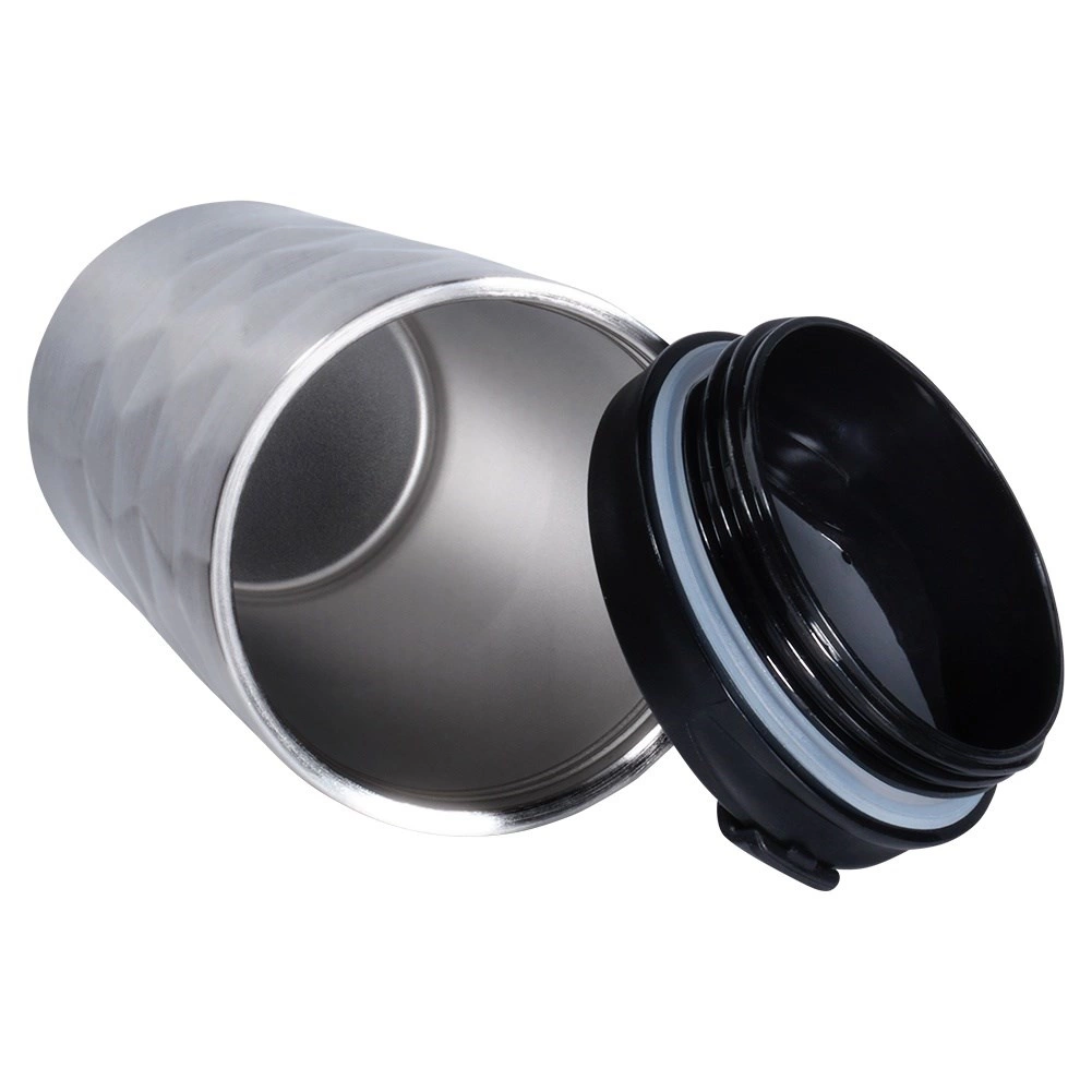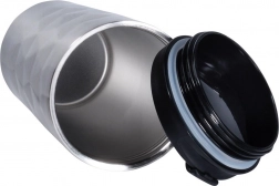 Stijlvolle roestvrijstalen thermobeker met een inhoud van 430 ml en vacuümisolatie houdt drankjes tot 12 uur warm en tot 8 uur koud. Voorzien van een lekdichte deksel met siliconen ring, een sluitbare drinkopening en een ergonomische vorm die perfect in de hand ligt en in autohouders past.