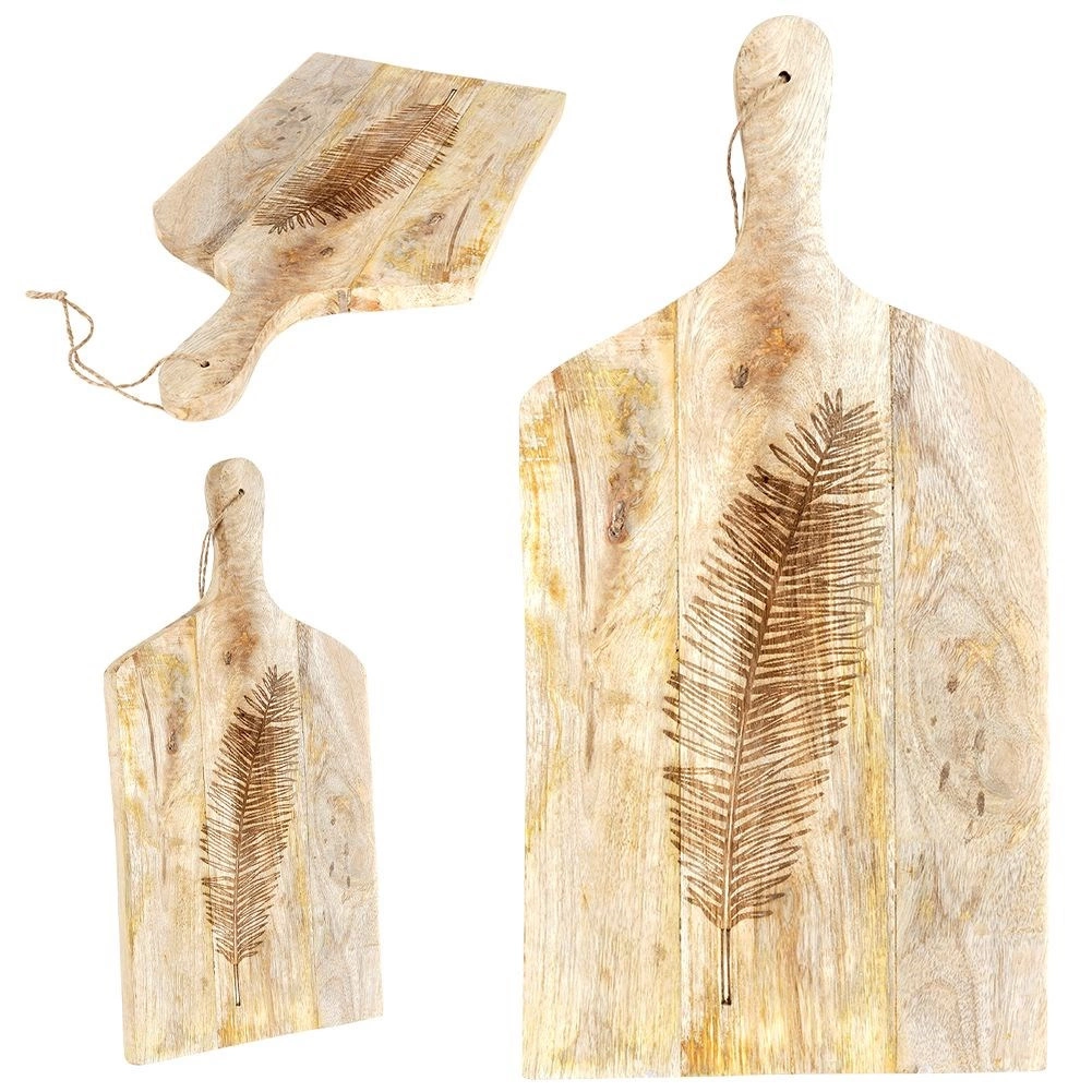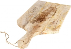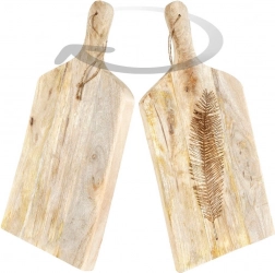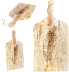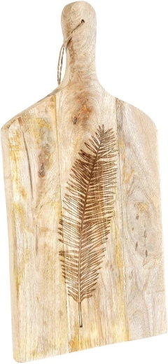 Ontdek de tijdloze plank van mangohout die in de keuken zowel dagelijks snijden als fraai serveren aankan. Aan één zijde siert een elegant bladreliëf het oppervlak, wat het tafelen een natuurlijke touch geeft. De robuuste dikte van 2 cm zorgt voor stabiliteit en een lange levensduur, terwijl de fijne houtnerf het unieke karakter van elk stuk benadrukt.