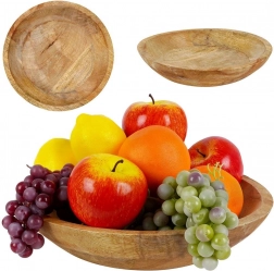 Elegante houten schaal van exotisch mangohout met een diameter van 30 cm en een inhoud van 1,5 l, ideaal voor het serveren van salades, snacks en warme gerechten. Valt op door de natuurlijke houtnerf, bestendigheid tegen vocht en geuren en veelzijdig gebruik van dineren tot decoratieve fruitschaal.