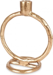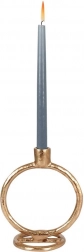 Elegante kandelaar voor één lange kaars, vervaardigd van hoogwaardig aluminium in goud. Dankzij de degelijk afgewerkte constructie en de ronde, stabiele basis houdt hij de kaars veilig op zijn plaats en is hij tegelijk een opvallend designelement in je interieur.