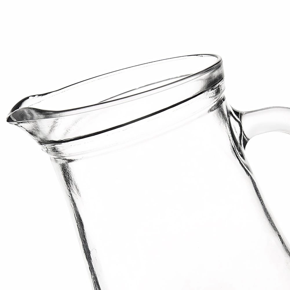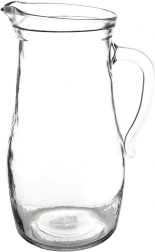 Praktische glazen kan met een inhoud van 1,75 l, gemaakt van transparant, dik glas, ideaal voor het dagelijks serveren van dranken. Biedt comfortabel schenken dankzij het ergonomische handvat en de gevormde tuit, is universeel voor water, sappen of limonades en makkelijk te onderhouden – geschikt voor de vaatwasser en magnetron.