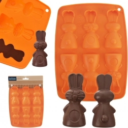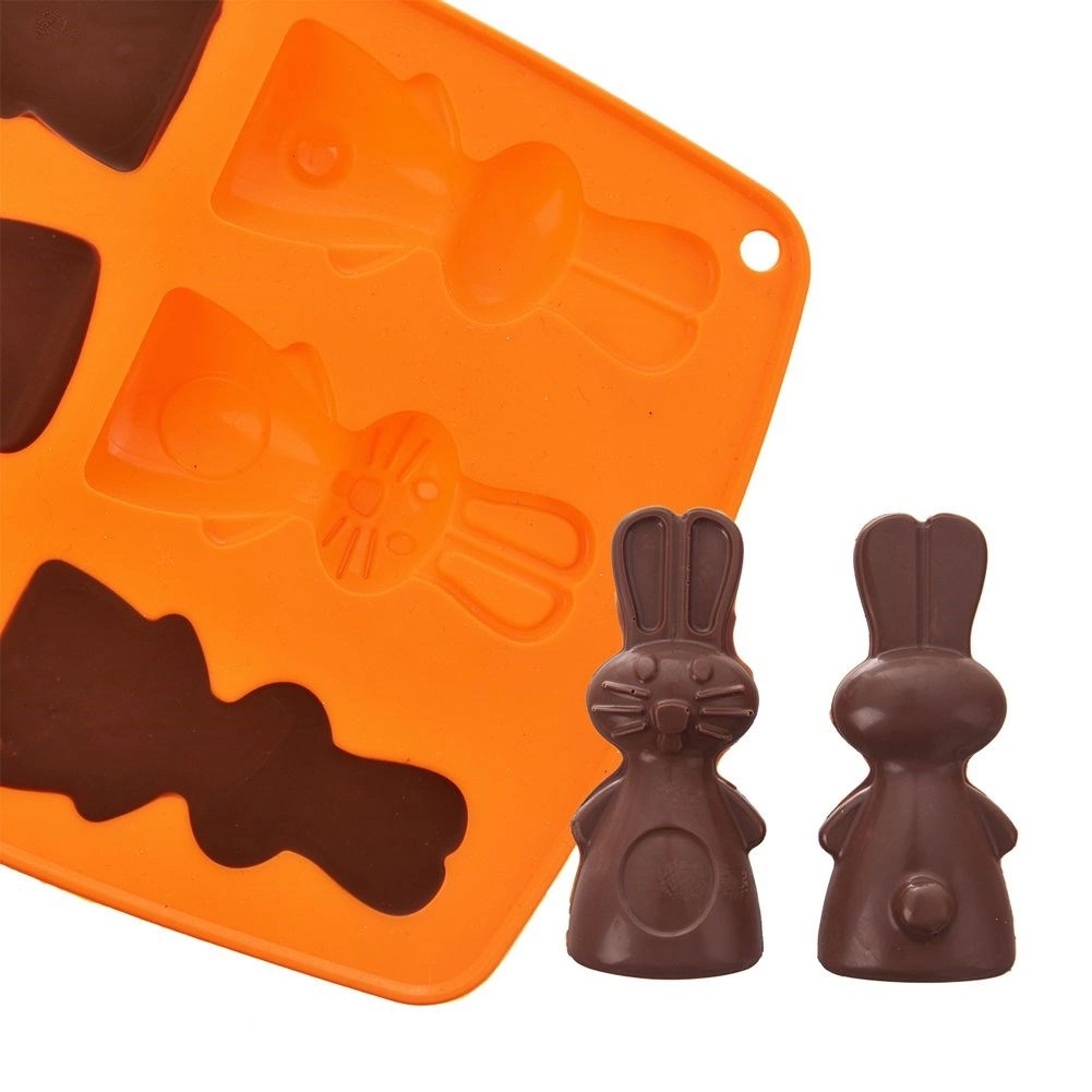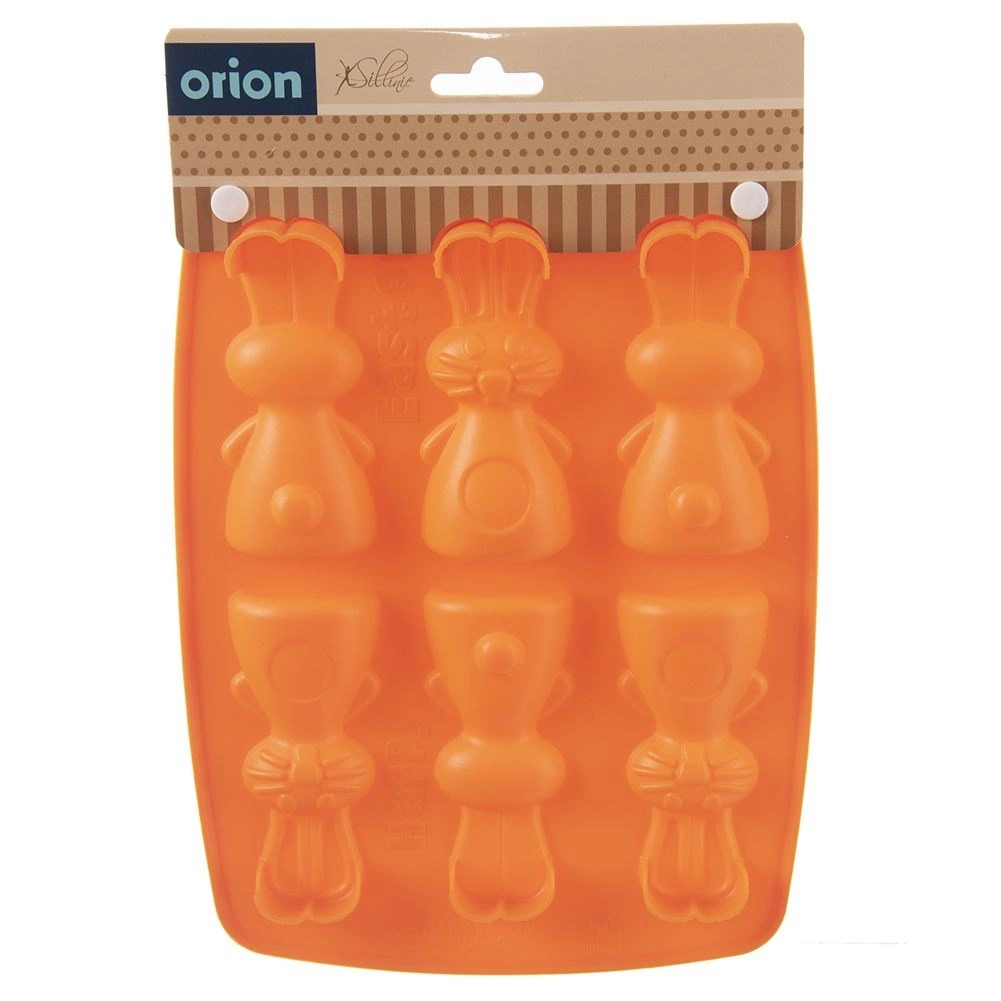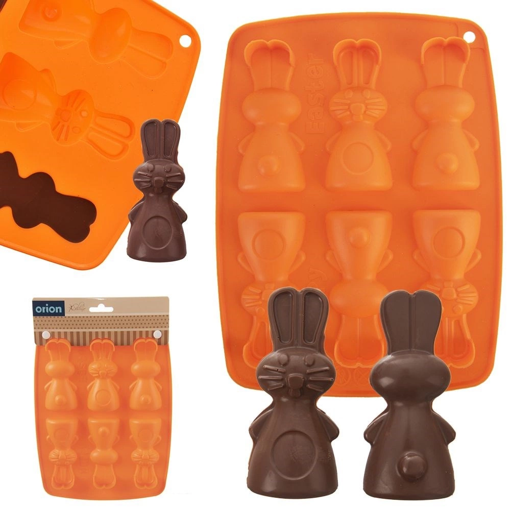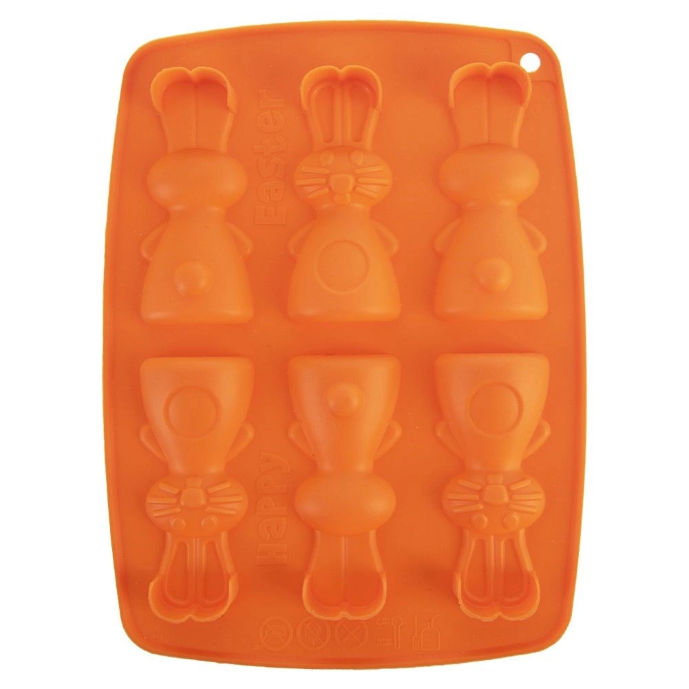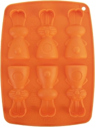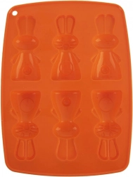 De siliconen vorm in oranje maakt het gemakkelijk om heerlijke koekjes, pralines of chocolaatjes in de vorm van konijntjes te bereiden. Dankzij het anti-aanbak en flexibele siliconen haal je de lekkernijen er eenvoudig uit zonder het model te beschadigen. De vorm neemt geen geuren of smaken op en is ruimtebesparend bij het opbergen.