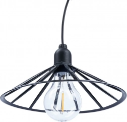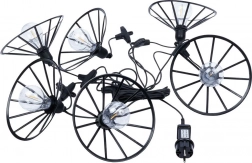 Zes heldere LED-lampen in zwarte metalen kooitjes creëren aangenaam warm licht en een opvallend decoratief effect.
