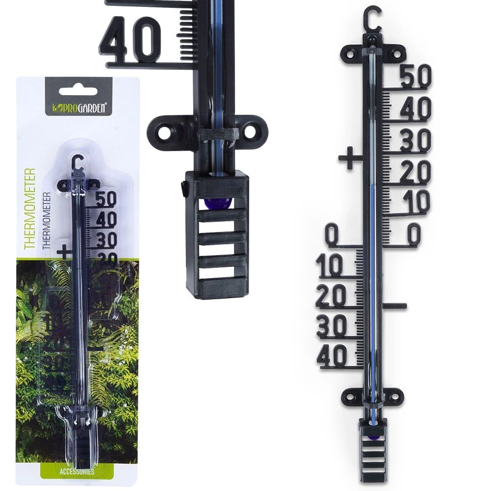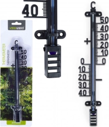 Stijlvolle thermometer in klassiek ontwerp die betrouwbaar de omgevingstemperatuur meet, zowel binnen als buiten. Grote cijfers en duidelijke markeringen zorgen voor uitstekende leesbaarheid zelfs vanaf grotere afstand. Dankzij de compacte afmetingen 6 × 2,5 × 25 cm is hij geschikt voor aan de huiswand, pergola, het balkon of in de gang.