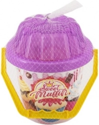 De lichte emmer met handvat en het Sweet Muffin-motief dient als opbergruimte voor de hele set en maakt dragen in het net makkelijker.