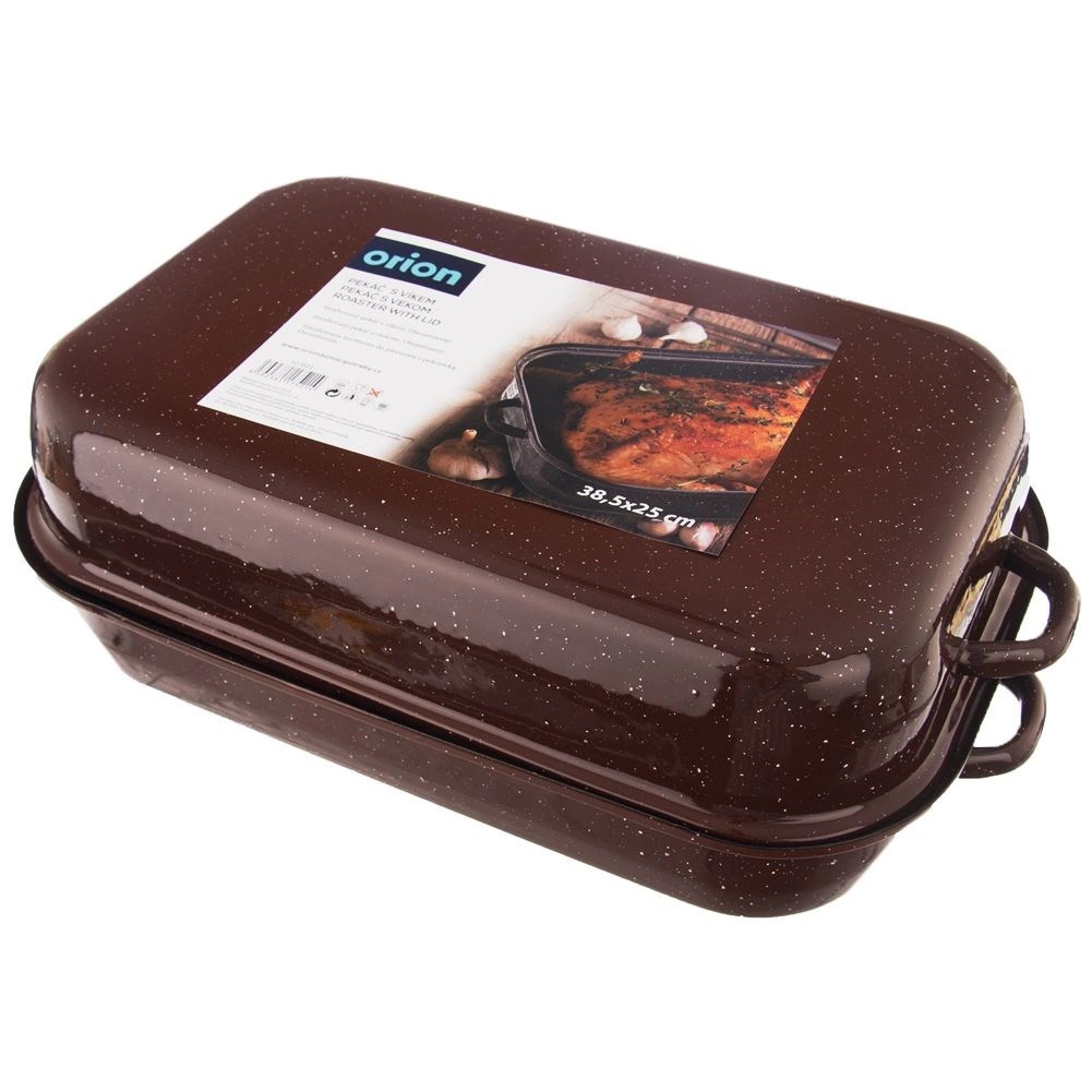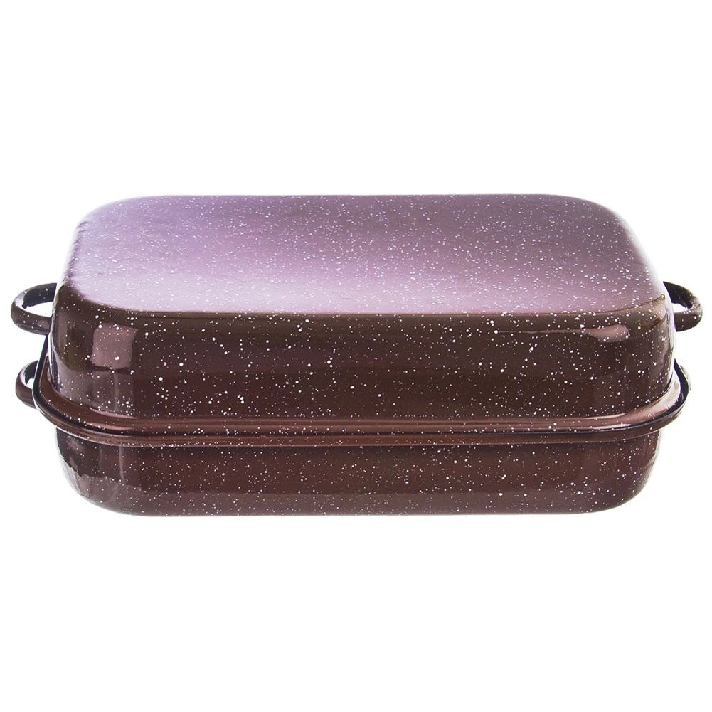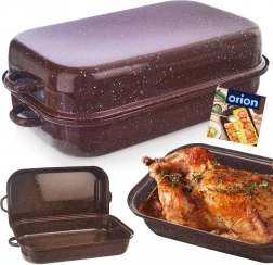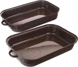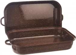 Deze robuuste geëmailleerde braadslede in elegante bruine kleur biedt veelzijdig gebruik in elke keuken. Dankzij het deksel met handgrepen krijgt u na het afnemen twee aparte oven- en serveerschalen. Het geëmailleerde oppervlak is veilig voor de gezondheid en geschikt voor allergiepatiënten, is eenvoudig te onderhouden en gerechten blijven minder snel kleven.