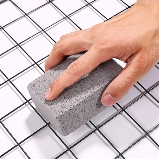 De steen is gemaakt van 100% ecologisch materiaal, dat geurloos is en geen giftige stoffen bevat. U hoeft niet bang te zijn dat uw glaskeramische kookplaat, grill of pannen na gebruik bekrast zullen zijn. Het is dus volledig veilig voor uw handen, die niet beschadigd raken, evenals voor elk oppervlak.<0>
