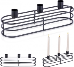 Design kandelaar voor drie hoge kaarsen die elke tafel of plank in een stijlvolle plek verandert. De duurzame metalen constructie in mat zwart garandeert een lange levensduur en veilige stabiliteit. Minimalistische lijnen in industriële LOFT-stijl laten zich makkelijk combineren met moderne én klassieke interieurs.