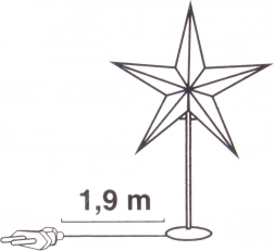 - Dik karton (ster), metaal (standaard), antislip schuim (basis)