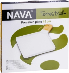 De porseleinen serveerschaal TERRESTRIAL combineert modern design met maximale functionaliteit. Het vierkante oppervlak met verhoogde rand houdt gerechten stevig op hun plaats, terwijl de ergonomische bamboe handgreep zorgt voor comfortabel en veilig transport van keuken naar tafel. Perfect voor koude en warme gerechten – van kaas en tapas tot vlees, fruit of desserts.