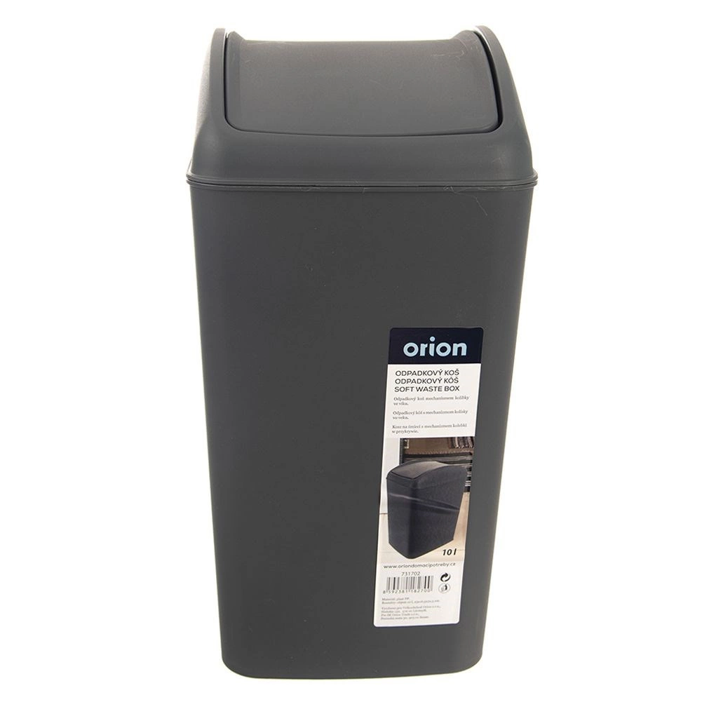 Praktische bak voor klein afval met een kiepende schommelklep, ideaal voor kleine ruimtes. Hij is licht, stabiel en duurzaam, zodat je hem op de vloer, op een werkblad of in een kast kunt plaatsen. Het strakke, tijdloze design in donkergrijs past bij diverse interieurstijlen.