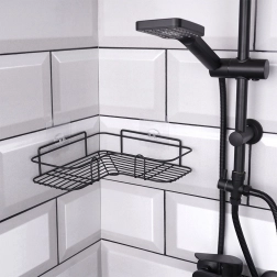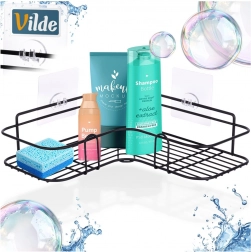 De zelfklevende hoekdoucheplank is een uitstekende oplossing voor elke badkamer in moderne loftstijl. Dankzij de stevige metalen constructie met matzwarte poedercoating is hij stabiel, duurzaam en gemakkelijk schoon te maken. Geschikt voor het opbergen van shampoos, gels, borstels en sponsjes, en ook te gebruiken in de keuken als kruidenrek. Inclusief transparante zelfklevende pads voor snelle installatie zonder de tegels te beschadigen.