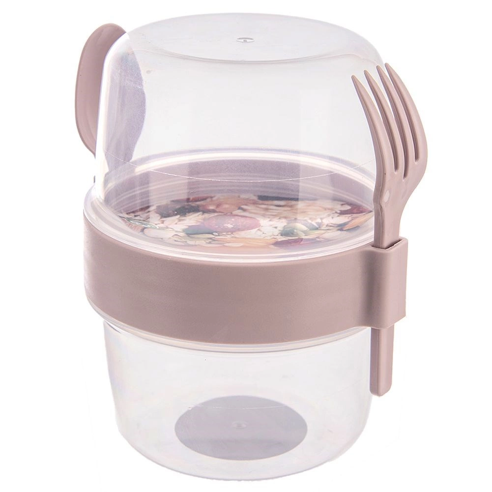 Geniet van verse yoghurt met je favoriete toppings altijd en overal. De tweelaagse beker scheidt yoghurt van muesli, fruit of noten, zodat alles knapperig blijft tot de laatste hap. De transparante wanden maken het eenvoudig om de inhoud te controleren zonder te openen.