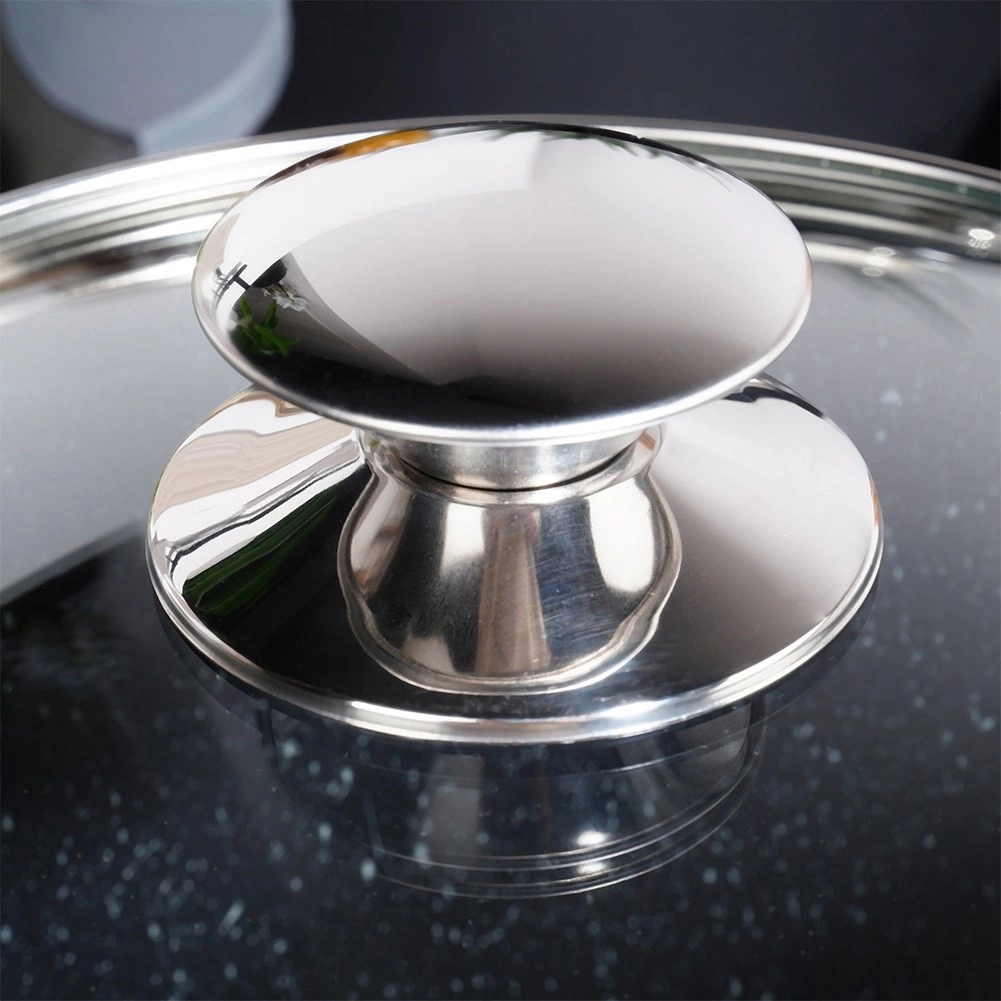 De meerlaagse bodem verspreidt de warmte effectief over het volledige oppervlak, verkort de kooktijd en bespaart energie op alle soorten kookplaten, inclusief inductie.