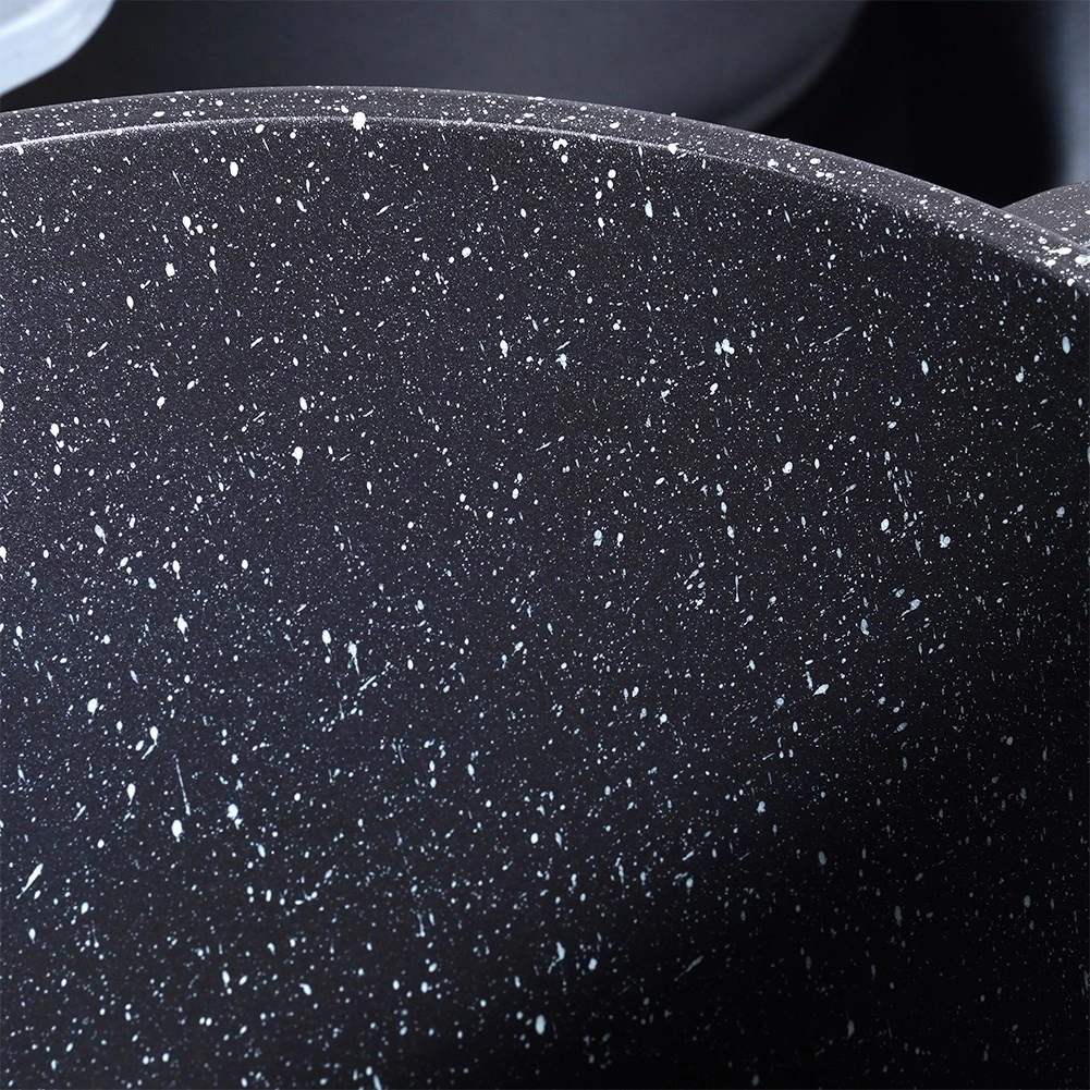 De hoge pan GRANDE is gemaakt van duurzaam aluminium met een antiaanbak granieten PFLUON-coating aan de binnenzijde, die vrij is van PFOA en PTFE. Zo bereidt u gezondere gerechten met minder vet en zonder aanbranden. Het glazen deksel met roestvrijstalen rand en ontluchtingsopening maakt controle tijdens het koken mogelijk zonder onnodig optillen.
