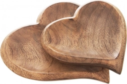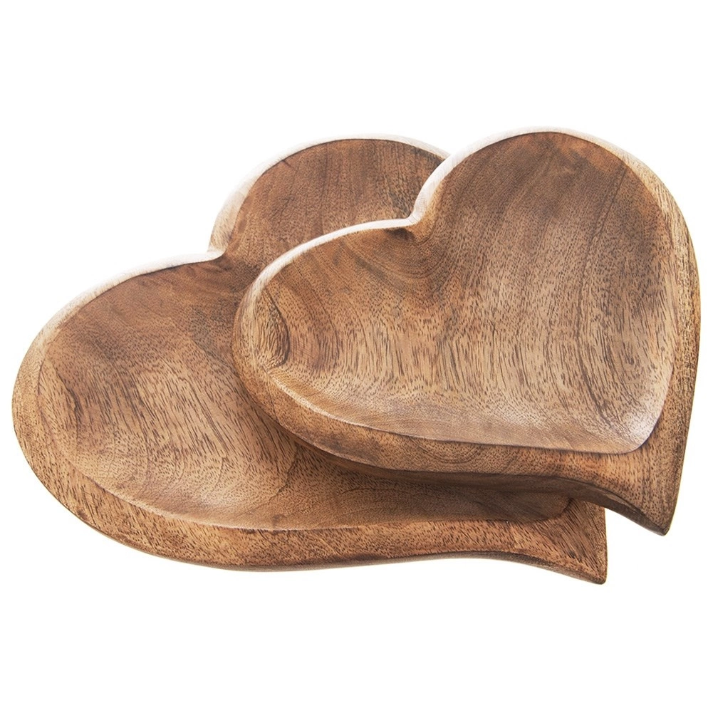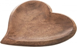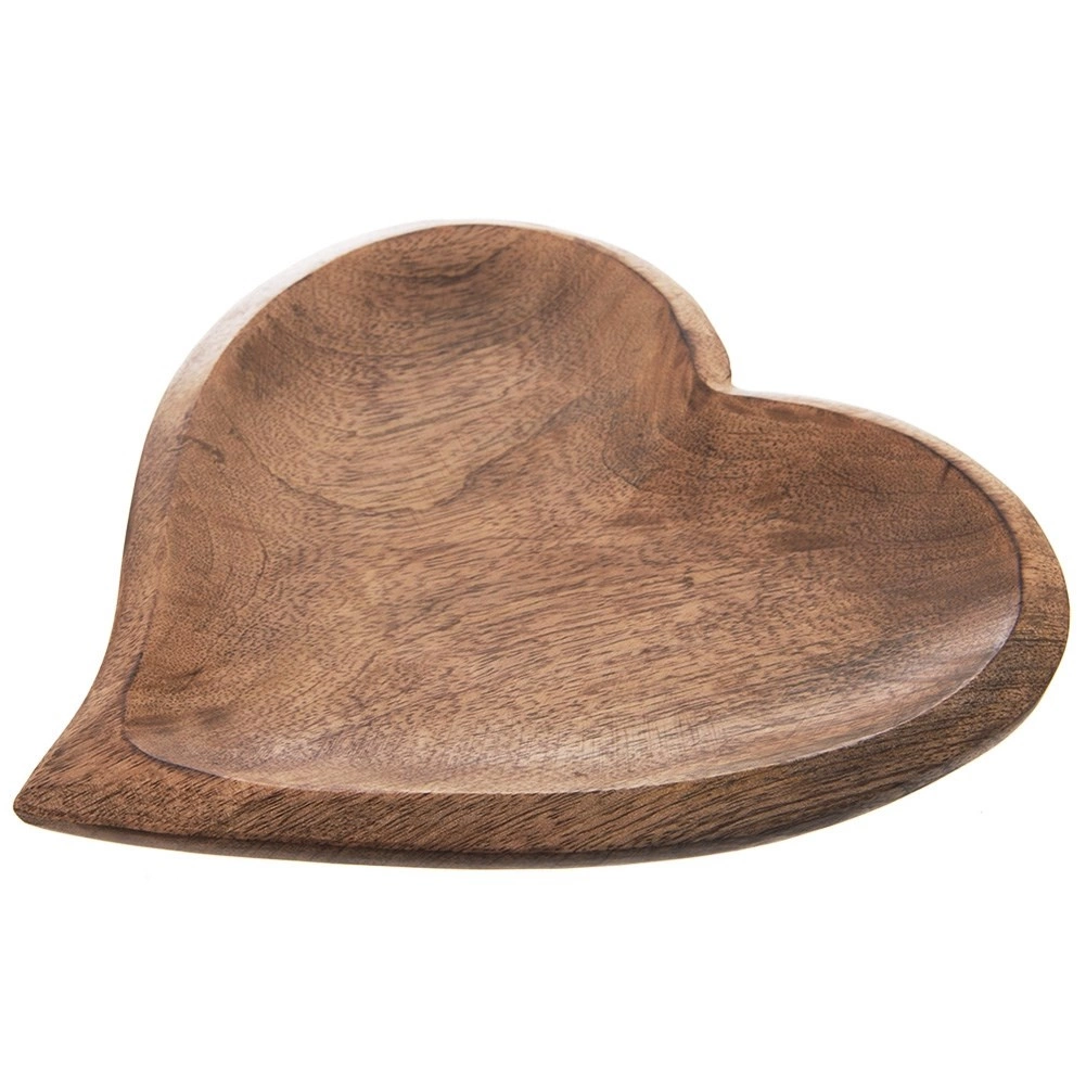 Houten serveerschaal voor hapjes van mangohout, hart 25 × 25 cm