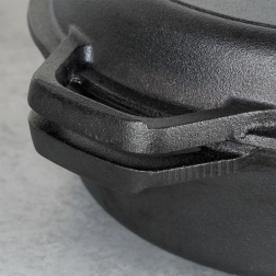 Het kookgerei is geschikt voor fornuis, oven, grill en open vuur. Praktische lange en hulpgrepen vergemakkelijken het hanteren en het gat in het handvat maakt ophangen mogelijk. Met de juiste verzorging (handwas, grondig drogen en licht inoliën) blijft gietijzer zeer duurzaam.