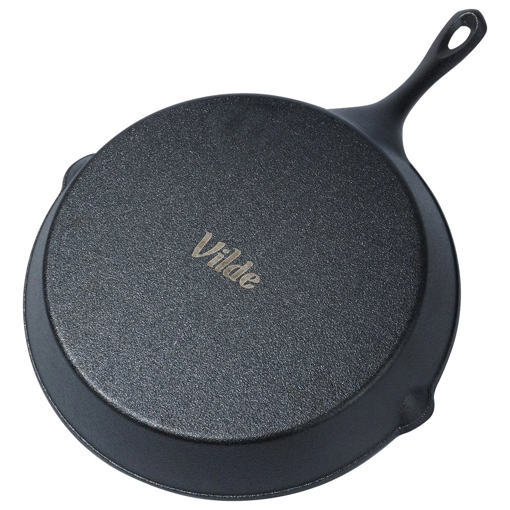 Robuuste gietijzeren pan met een diameter van 30 cm en een afneembare siliconen hoes voor de handgreep biedt gelijkmatige warmteverdeling, perfecte, knapperige korst en veelzijdig gebruik op het fornuis, in de oven en op de grill. Twee praktische schenktuiten vereenvoudigen afgieten en overgieten, terwijl duurzaam gietijzer de warmte uitstekend vasthoudt voor langer serveren direct aan tafel.