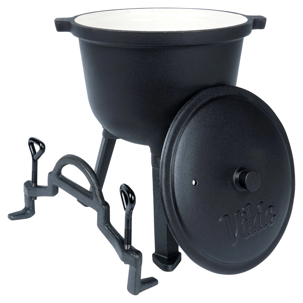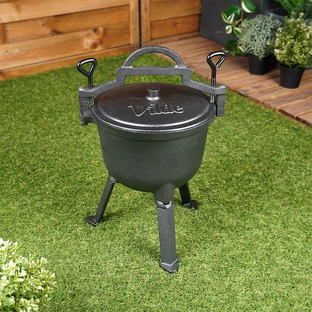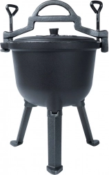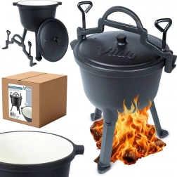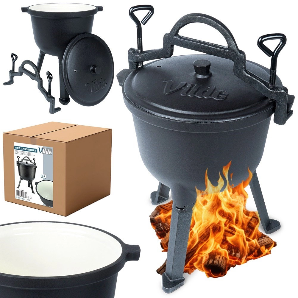 Robuuste gietijzeren ketel op drie pootjes met deksel en stevige beugel biedt een inhoud van 4 l, gelijke warmteverdeling en een geëmailleerde binnenkant voor eenvoudig schoonmaken. Ideaal om boven open vuur te koken in de tuin, bij de grill of tijdens het kamperen. Stabiele constructie, ontluchtingsopening in het deksel en lange levensduur dankzij duurzaam gietijzer.