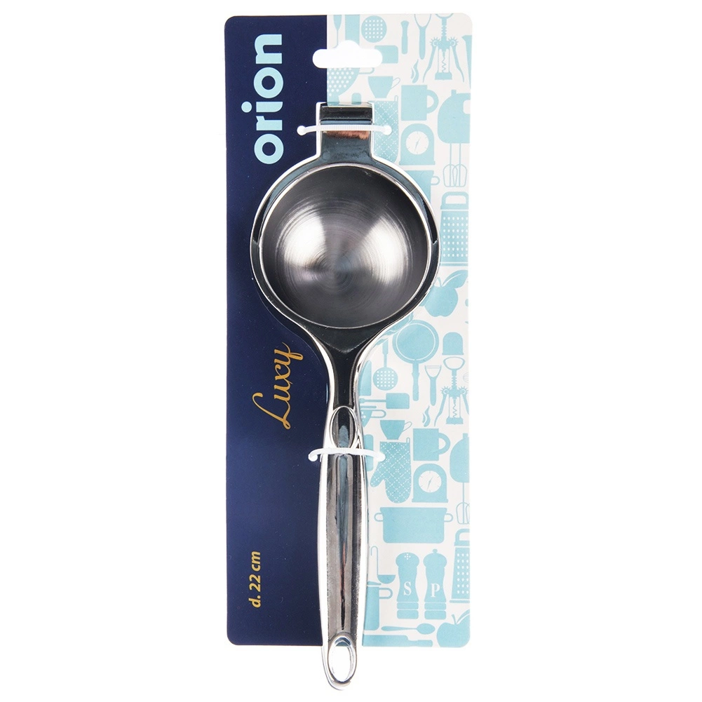 Praktische handmatige citruspers van duurzaam metaal met afmetingen 22 × 7 cm voor snel en comfortabel persen. Dankzij de ergonomische handgrepen en de geperforeerde kom krijg je maximaal sap zonder pitten en pulp. De volledig metalen uitvoering met glanzende roestvrijstalen afwerking is duurzaam, hygiënisch en eenvoudig te reinigen – ook geschikt voor de vaatwasser.