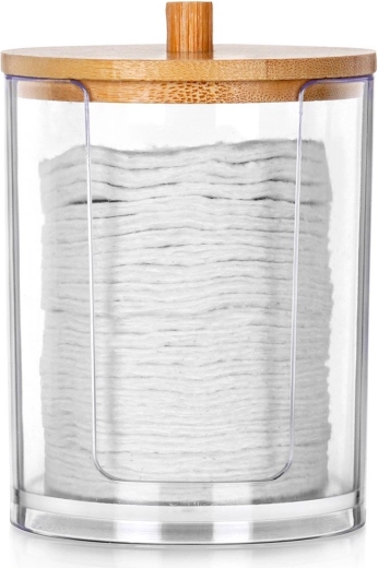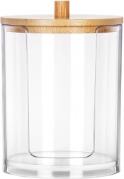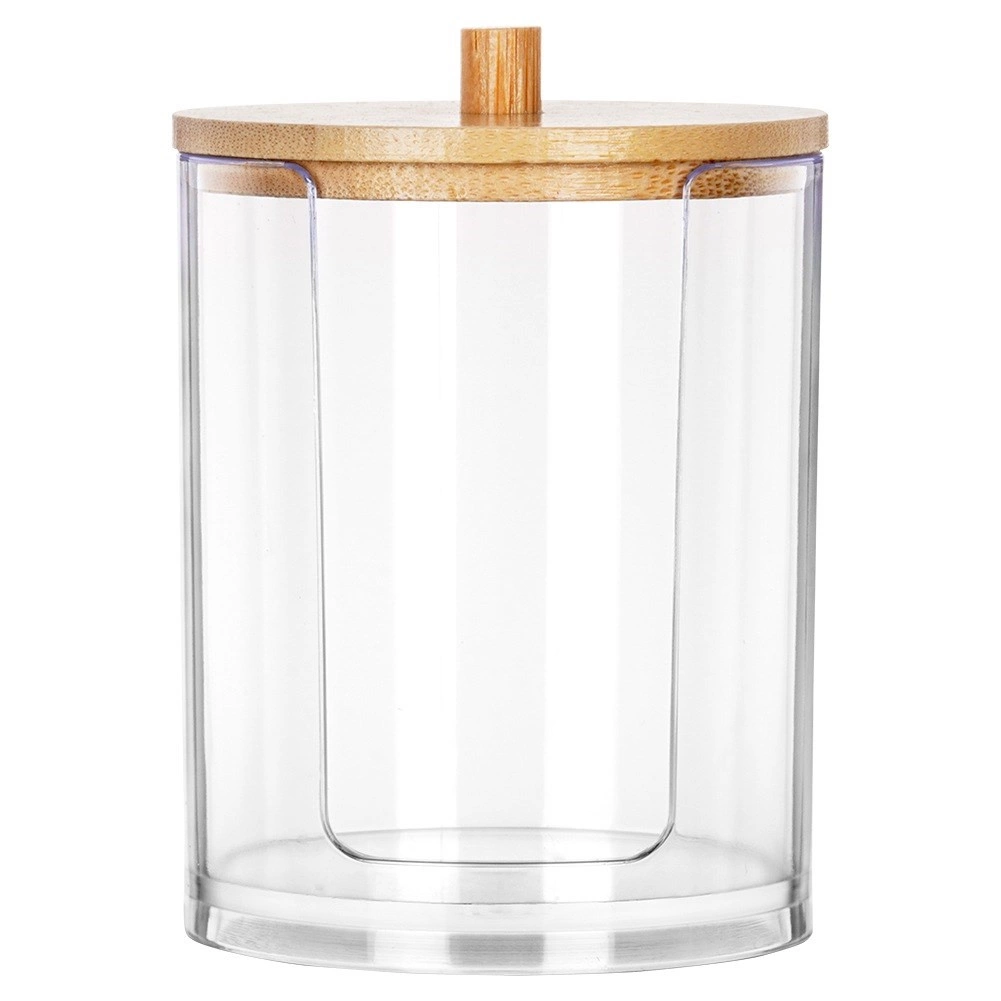 Deze compacte houder met een diameter van 7 cm en een hoogte van 10 cm is gemaakt van sterk, transparant acryl, zodat je altijd ziet hoeveel watjes er over zijn. Het bamboe deksel met comfortabele greep beschermt de inhoud tegen stof en geeft een natuurlijke, elegante look.