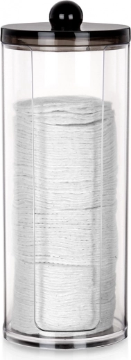 Praktische dispenser voor cosmetische wattenschijfjes van helder acryl met een handig deksel beschermt tegen stof en houdt de badkamer netjes. Dankzij de transparante behuizing heb je altijd zicht op de voorraad en door de brede opening is bijvullen snel en eenvoudig. Modern design, comfortabele dosering en compacte afmetingen maken dit accessoire de ideale keuze voor dagelijkse verzorging.