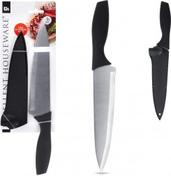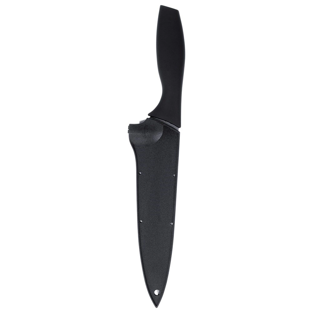 De stevige kunststof bescherming voorkomt beschadiging van het snijvlak en beschermt je tegen ongelukken tijdens het opbergen of vervoeren van het mes.