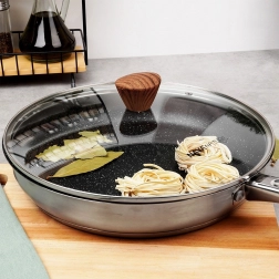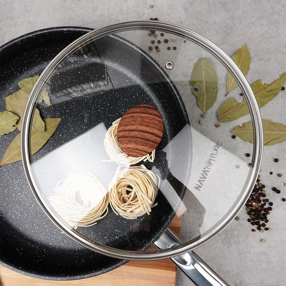 Dankzij het transparante glas volgt u het gerecht eenvoudig zonder onnodig warmteverlies. De stoomontsnappingsopening laat stoom vrij, het deksel is licht gebold voor een betere circulatie van hete lucht en de hoge rand zorgt voor een stevige, dichte afsluiting. Het deksel versnelt het koken, houdt de temperatuur vast en minimaliseert spatten.