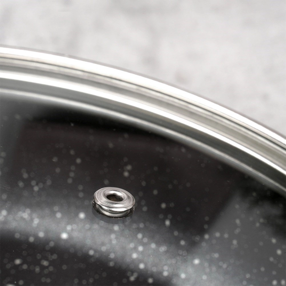 Het geïntegreerde ventiel laat overtollige stoom ontsnappen en voorkomt overkoken, terwijl de roestvrijstalen rand de duurzaamheid verhoogt en voor een stabiele pasvorm op het kookgerei zorgt.