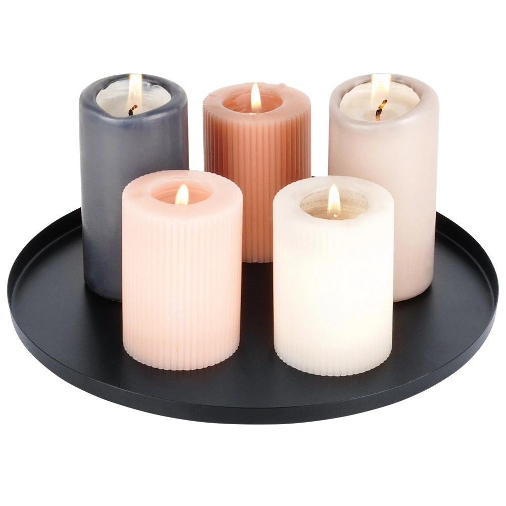 Deze hoogwaardige metalen onderzetter in mat zwarte afwerking is perfect voor het schikken van kaarsen, decoraties of sieraden. De diameter van 30 cm en de licht verhoogde rand zorgen voor stabiliteit en beschermen oppervlakken tegen was en vuil. Dankzij de tijdloze uitstraling combineert hij moeiteloos met uiteenlopende interieurstijlen.