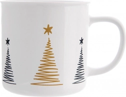 Geniet in grote stijl van warme dranken. De witte keramische mok met een elegante print van kerstboompjes brengt een feestelijke sfeer naar je dagelijkse tafelsetting. Dankzij de ruime capaciteit van 500 ml geniet je langer van je favoriete drankje zonder vaak bij te schenken.